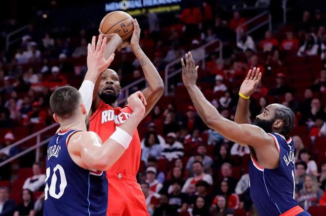 哈登、祖巴茨合力防守杜兰特